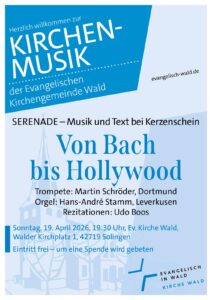 Sonntag, 19. April 2026, 19:30 Uhr, Ev. Kirche Wald, Walder Kirchplatz 1, 42719 Solingen